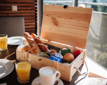 Für diese Momente ist gesorgt. Frühstückskörbe, kleine Jausen und ausgewählte regionale Spezialitäten aus Kärnten können unkompliziert vorbestellt werden. Oder Sie bedienen sich ganz spontan in unserem Self-Service-Bereich. Essen, wann und wo Sie wollen – ganz nach Ihrem eigenen Rhythmus. Unsere kulinarischen Angebote sind nicht im Übernachtungspreis inkludiert und können während Ihres Aufenthalts flexibel ergänzt werden.